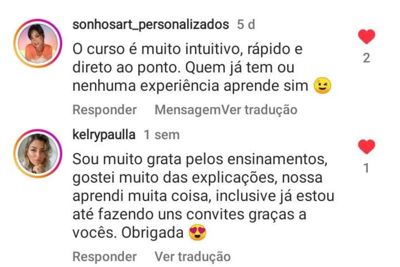 Somente o curso de convites tecnológicos pode ser aplicado pelo celular, o restante somente pelo computador.
